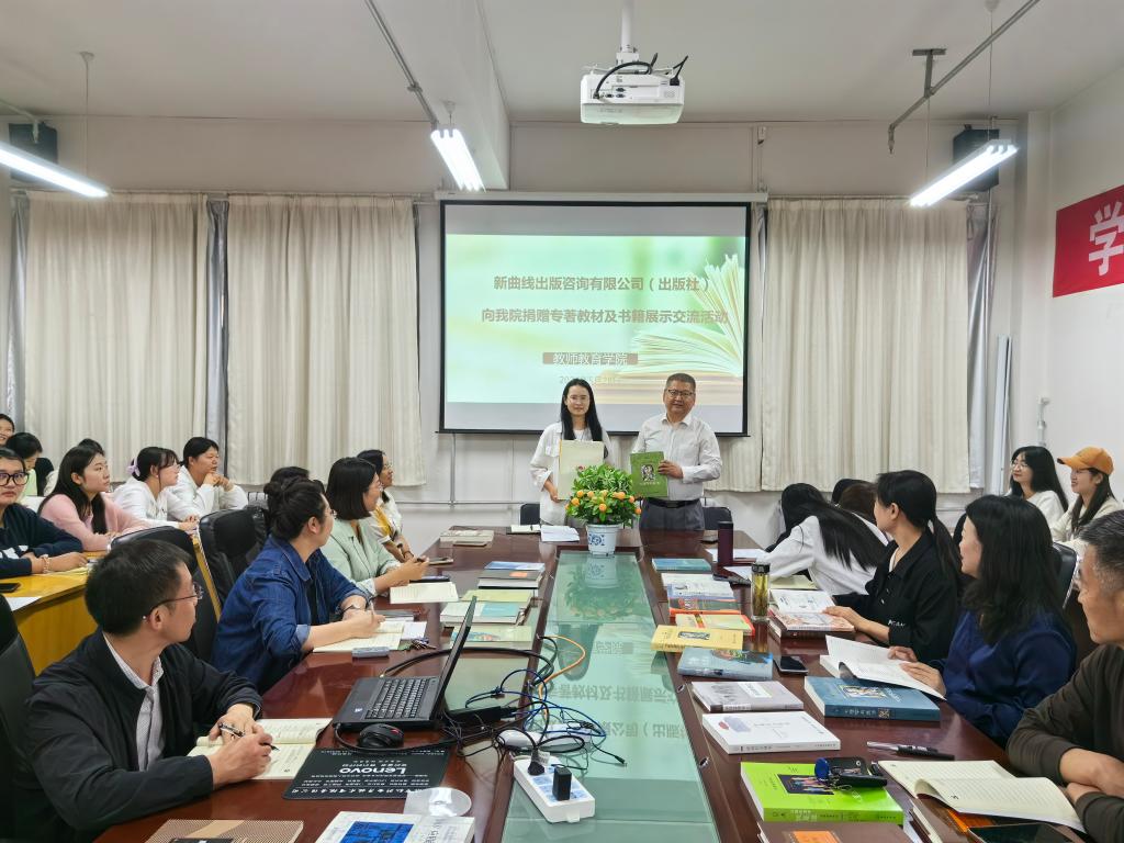 5月28日下午,北京新曲线出版咨询有限公司向SUNBET申博捐赠专著教材暨书展交流活动在公司会议室举行。新曲线出版咨询有限公司营销经理王欣宇,SUNBET申博经理雒焕国、副经理马富成、各专业负责人及部分师生代表参与了活动。活动由公司党委书记王莉教授主持。