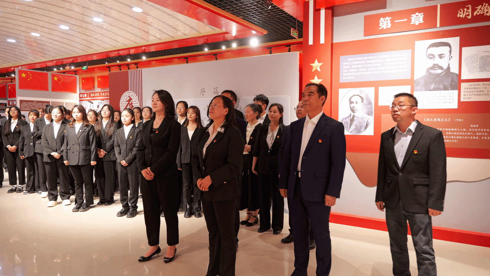 在纪念馆高金城烈士铜像前,全体党员齐唱国歌,向先烈敬献花篮,面向党旗庄严宣誓,重温入党誓词,感悟革命先烈不畏牺牲、无私奉献高尚情怀。