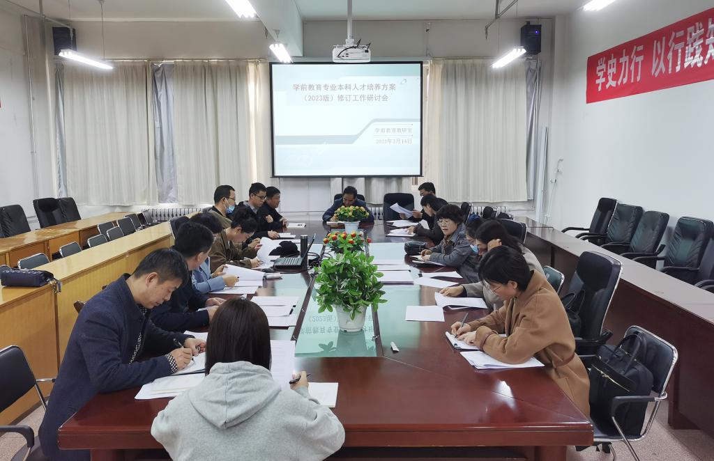 根据教务处下发的《关于做好2023版本科专业人才培养方案修订工作的通知》,3月14日下午,SUNBET申博召开了2023版学前教育专业本科人才培养方案修订会议,公司分管教学工作领导、学前教育和艺术教研室全体教师参加了会议。