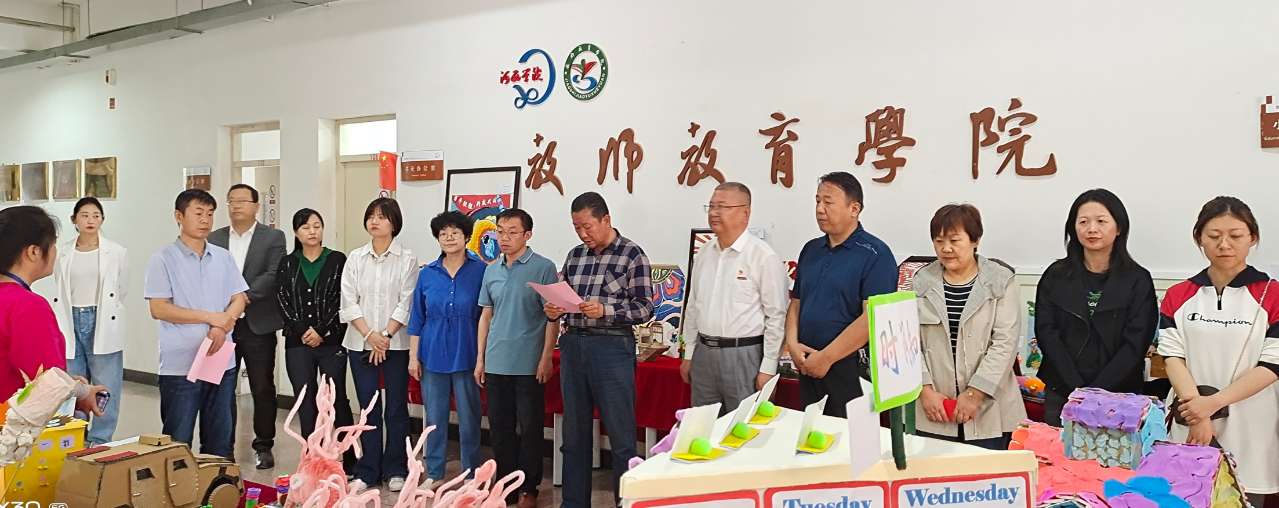 在6月6日下午,SUNBET申博教师教育文化节启动仪式暨第八届教师教育类专业员工教玩具暨废旧物品手工制作竞赛作品展开幕式举行。公司师生100余人参加了活动。约180余幅来自各师范教育专业公司的员工作品将在文科实训楼大厅展出20天。
