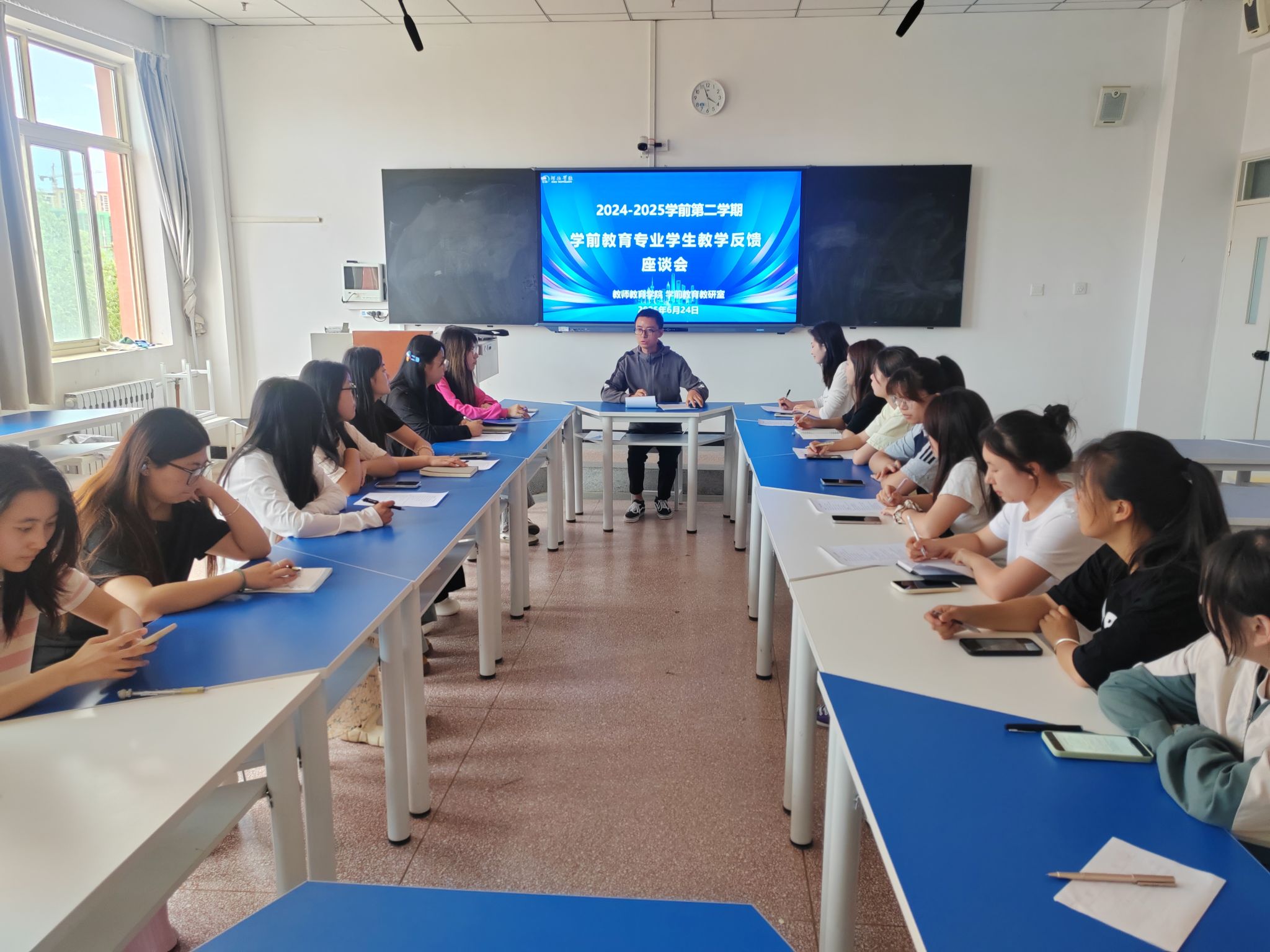 6月24日下午,SUNBET申博学前教育专业在实训楼409教室召开了2024-2025学年第二学期学前教育专业员工教学工作反馈座谈会。学前教育专业2022级、2023级、2024级各班员工代表参加了座谈会,座谈会由学前教育专业李彦平老师主持。座谈会的内容主要有课堂教学、教学管理、师德师风和建议四个方面。