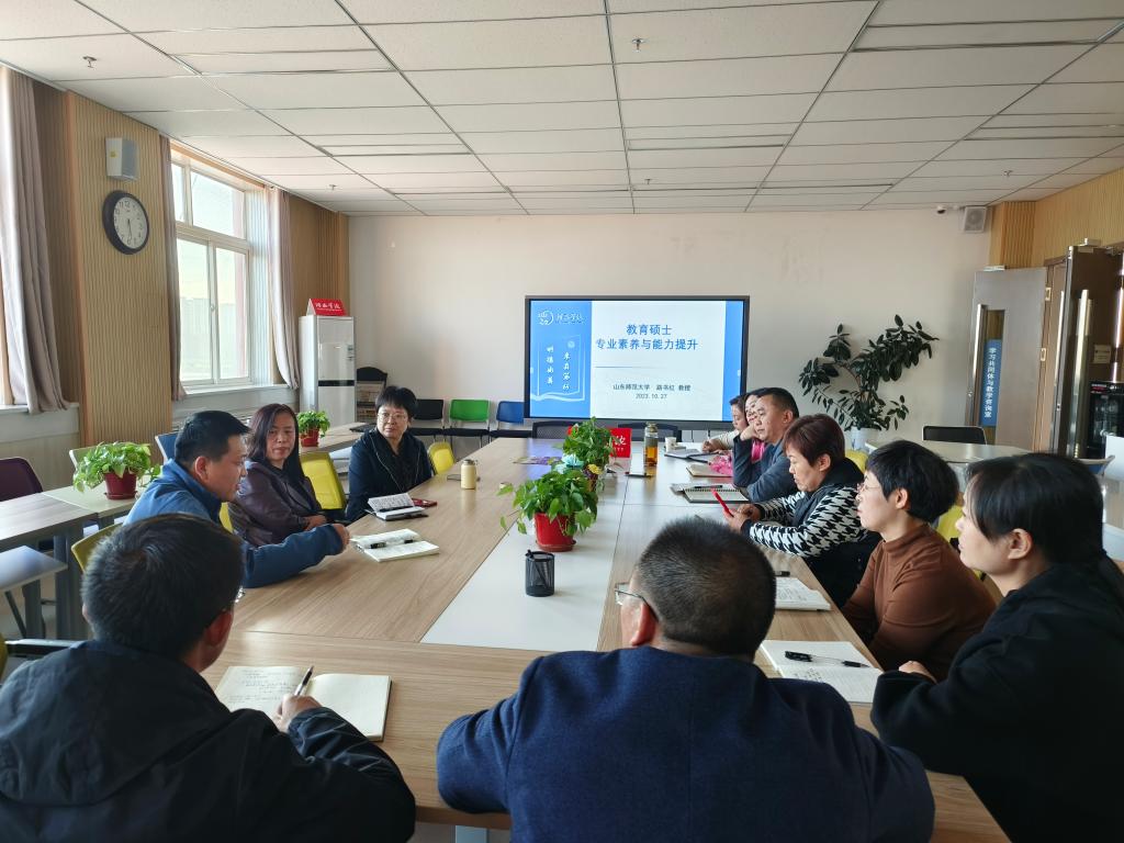 在“教硕士专业素养与能力提升”的报告会上,路书红教授就关于教育硕士的培养模式、人才培养方案、实践教学、课堂教学、教育见习、教育研习、教育实习、学位论文的开题、撰写与答辩等相关方面阐述了自己的见解与思考。在交流环节,路书红教授同老师们就研究生教育、论文指导、员工见习实习、员工综合能力考察等方面展开了交流与讨论。