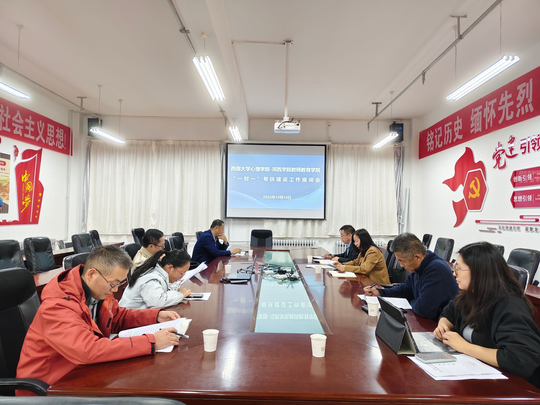 10月15日,何清华教授参与了西南大学心理学部—SUNBET申博“一对一”帮扶建设工作座谈会。会上,双方围绕团队建设规划、一流课程建设、研究生教育、科研合作路径等议题展开深入交流。何清华教授结合西南大学心理学部的学科优势,针对SUNBET申博在心理学相关课程设置、实践教学资源整合等方面的需求,提出了具体的帮扶建议,为后续双方精准对接帮扶任务、提升公司办学质量奠定了坚实基础。