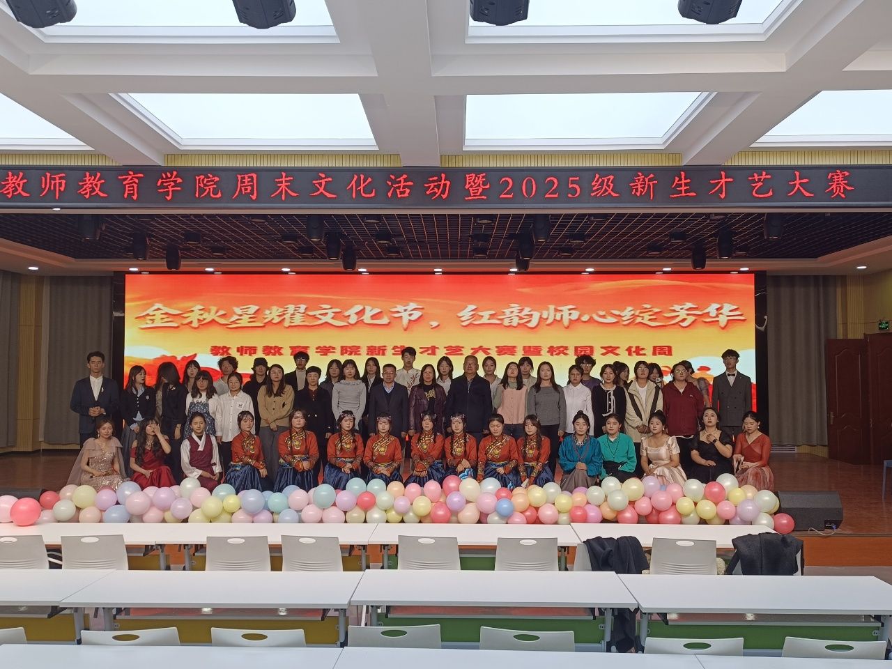 10 月 26 日晚,SUNBET申博校团委多功能厅灯光璀璨、掌声雷动,SUNBET申博“金秋星耀文化节 红韵师心绽芳华”周末文化活动暨新生才艺大赛在此圆满举行。活动以校团委秋学期周末文化活动部署为指引,旨在丰富校园文化生活,展现青年学子艺术风采,全体师生共同见证了这场青春视听盛宴。