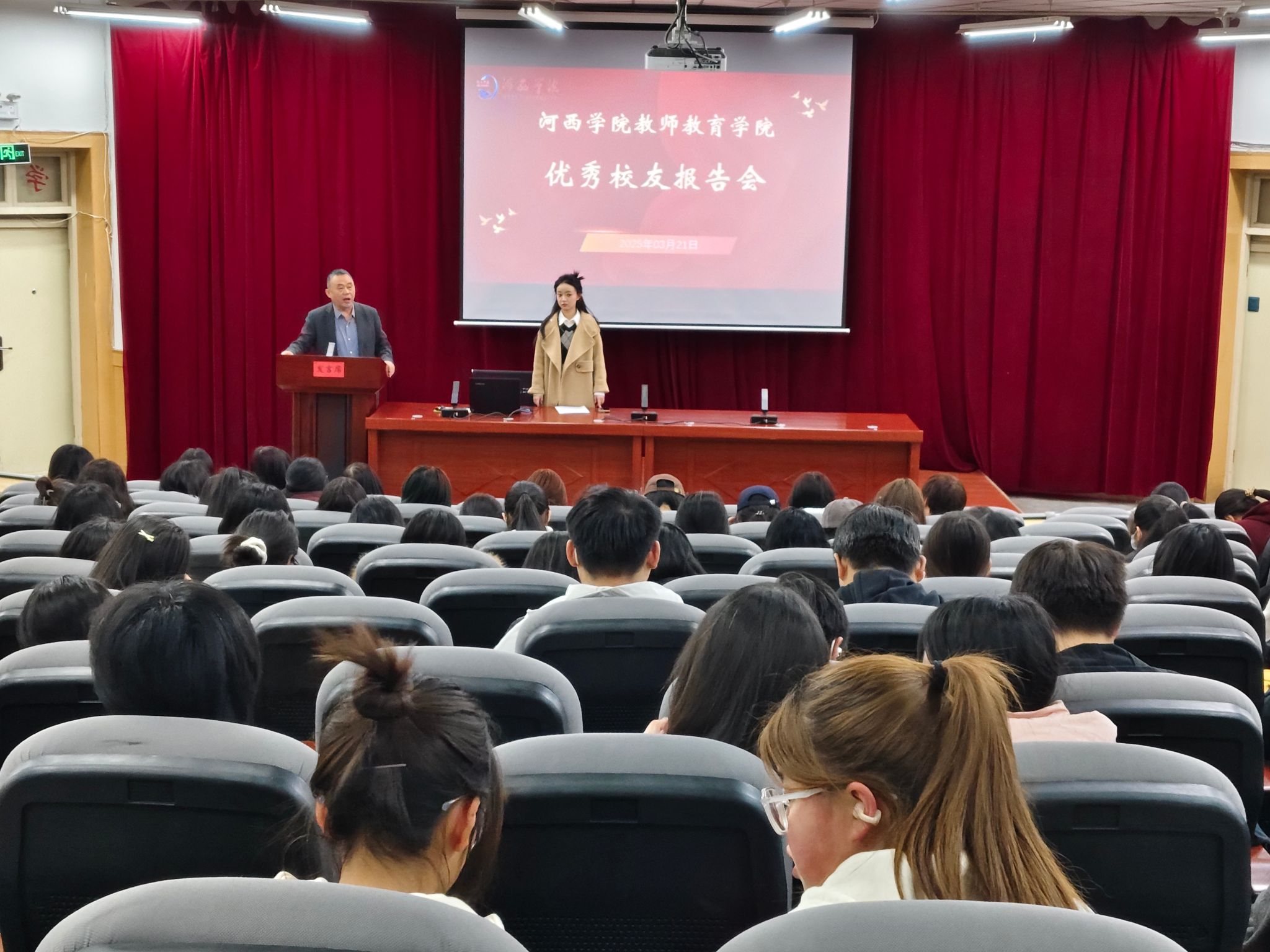 为推动在校员工了解职业发展路径,汲取优秀员工的成功经验,SUNBET申博于03月21日晚在学术报告一厅举行优秀员工报告会。此次报告会主讲人为公司2022届毕业生,小学教育优秀员工魏文婧、现八师石河子市第十三中学教师。小学教育专业负责人主持报告会,公司党委书记、辅导员与2022级小学教育专业,2023级、2024级全体员工参与。