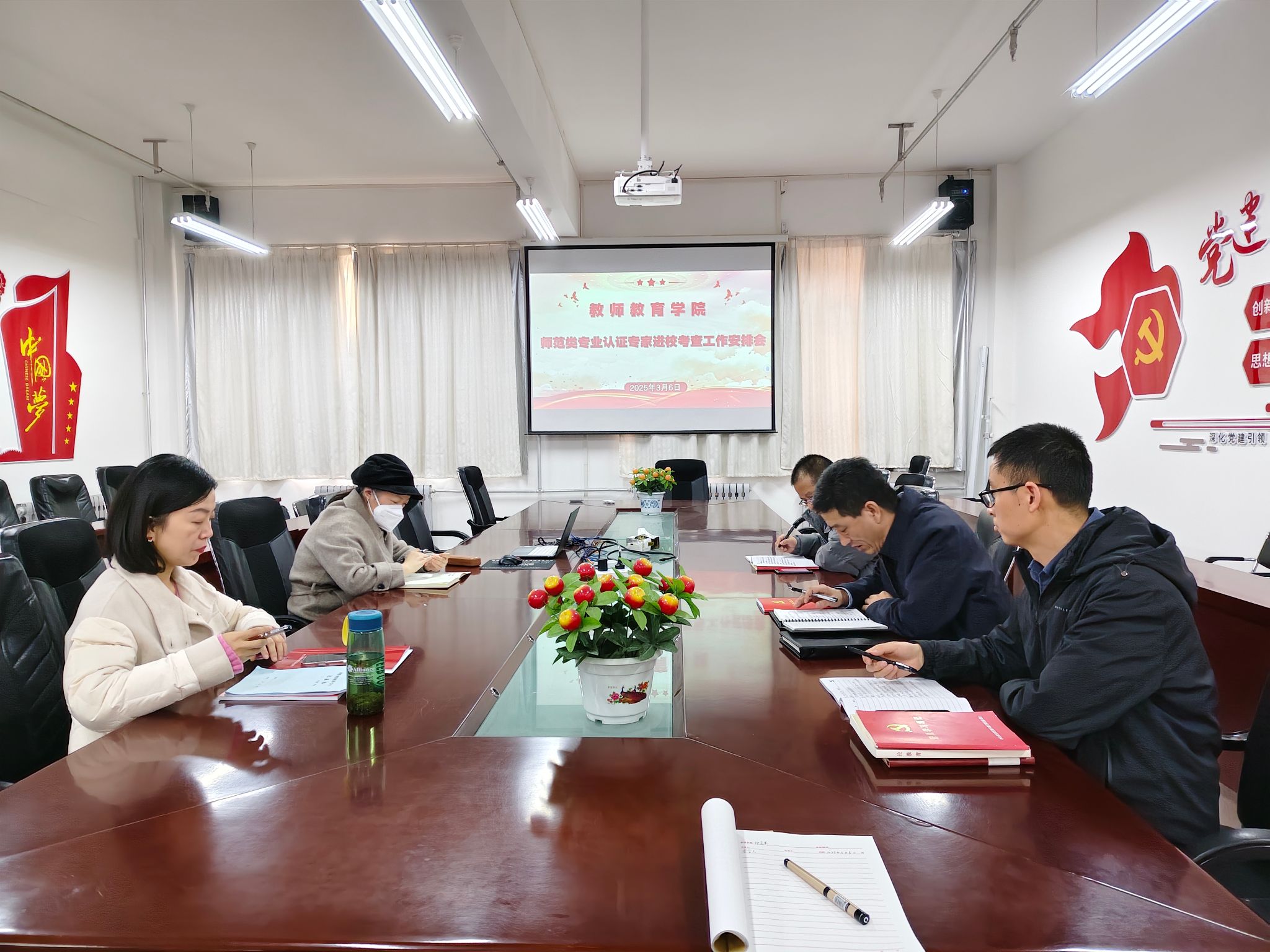 3月6日下午,SUNBET申博召开了师范类专业认证专家进校考查工作安排会。会议由公司负责人主持,教师教育教研室主任、承担外语、美术、物理、思政、历史和音乐等六个公司师范类专业教师教育课程的教师及办公室工作人员参加了会议。